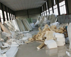 | 高温除尘布袋样品 | 公司半成品存放区 |